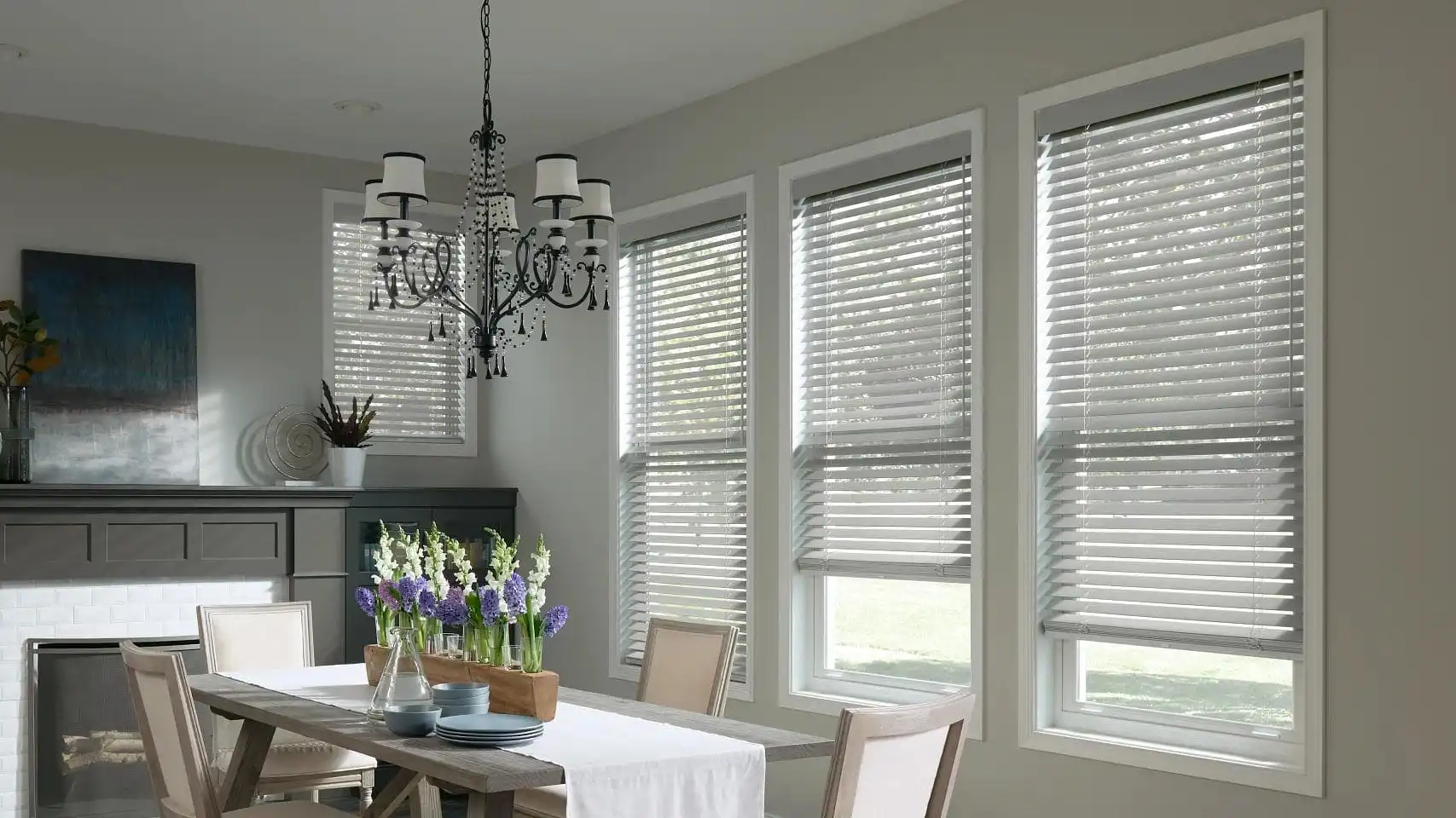 Keep large windows looking clean and uniform by putting two blinds on one continuous headrail. They look like one blind, but operate independently.