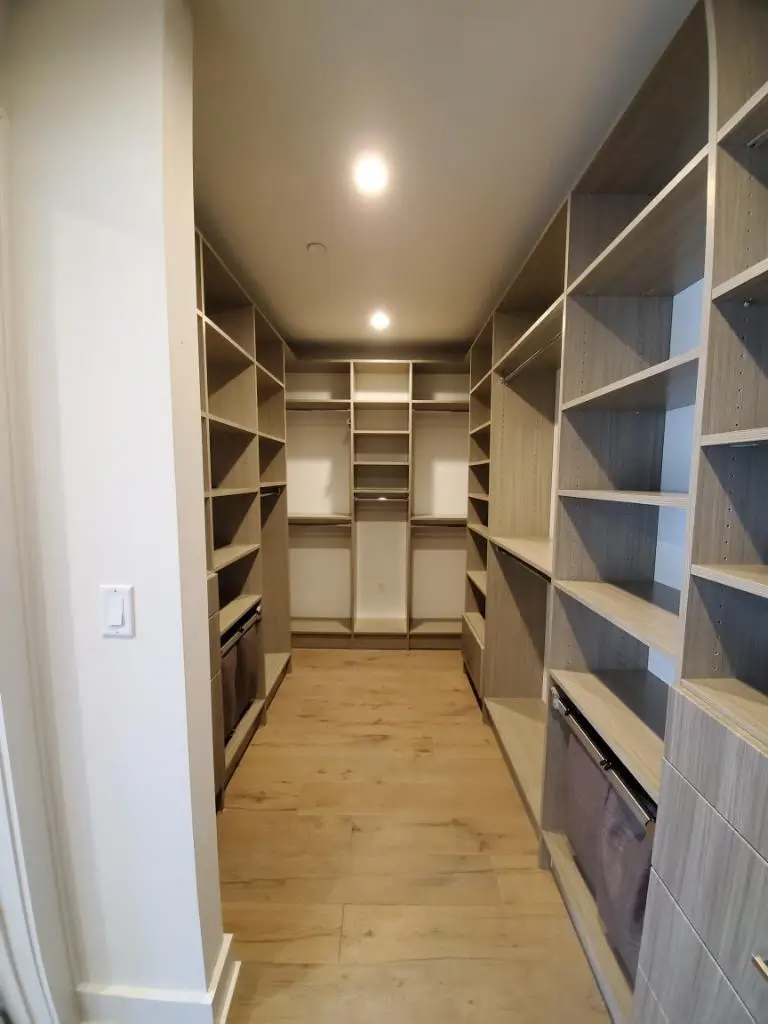 Often overlooked by designers, the closet is always at risk of becoming an afterthought, leaving homeowners frustrated with inadequate storage. That’s where we come in. Our custom closet buildouts transform these essential spaces into organized, functional, and stylish areas tailored to your needs.