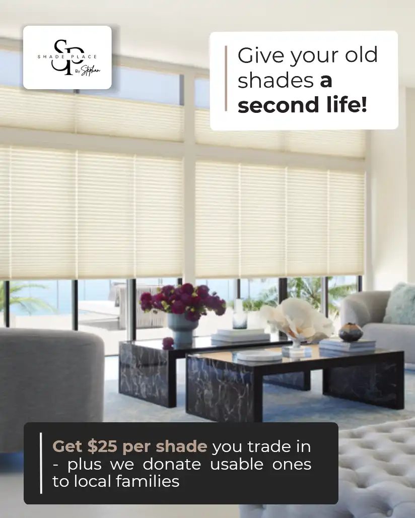 Trade in your old window treatments and get $25 back per shade toward something new. If they’re in good condition, we’ll donate them to local charities, giving them a second life.